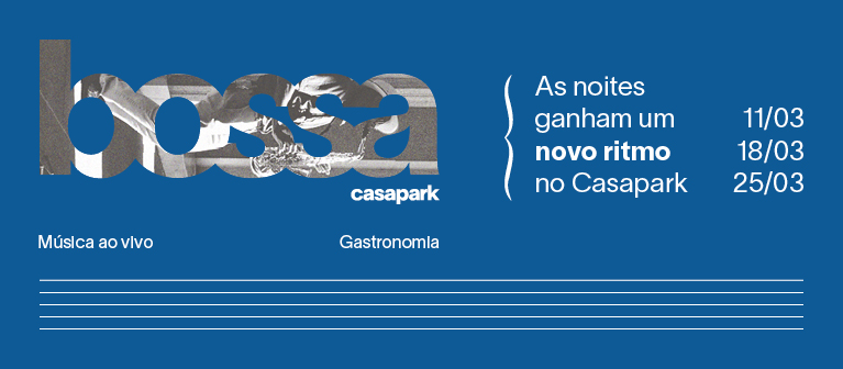 Em março, o Casapark apresenta o projeto musical Bossa Casapark, uma série de pocket shows exclusivos com músicos da cidade interpretando o melhor do Jazz, do Pop e do R&B. Com curadoria e programação de Jorge Salomão, da Artfex, as apresentações acontecem nos dias 11, 18 e 25 de março, das 19h às 22h, nos lounges dos cafés e restaurantes do Casapark. A entrada é gratuita e livre para todos os públicos. O Casapark está localizado na SGCV 22, Park Sul, Brasília. Telefone: (61) 3403-0053. A programação pode ser conferida nas redes sociais @casapark e @artfex.music.